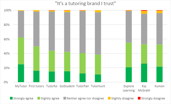 Question 2 of this survey was “Look at the following tutoring brands. For each, how far do you agree with the statement "It's a tutoring brand I TRUST"